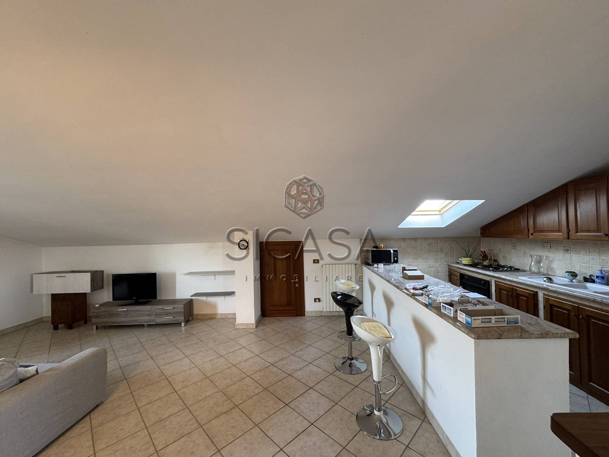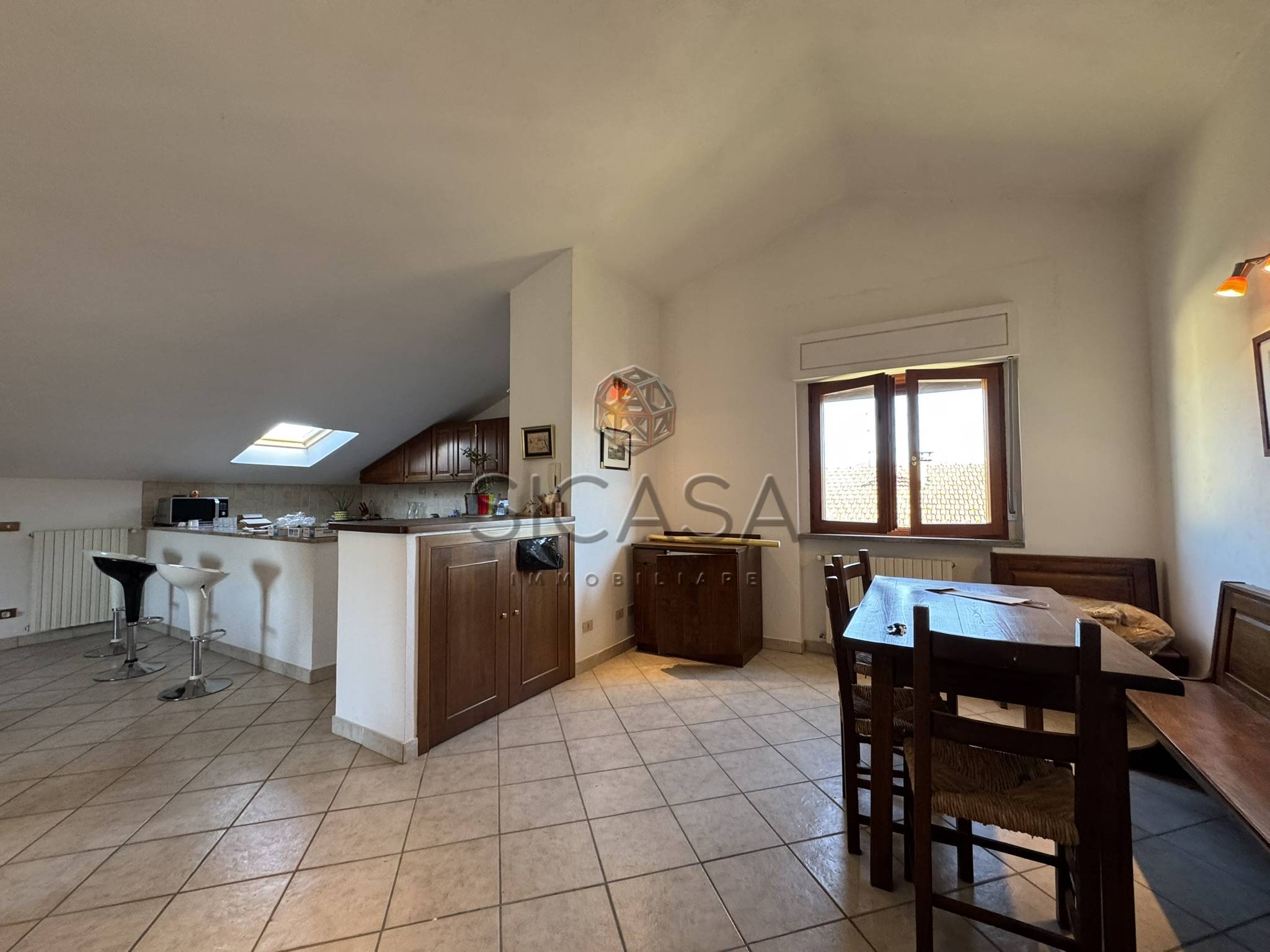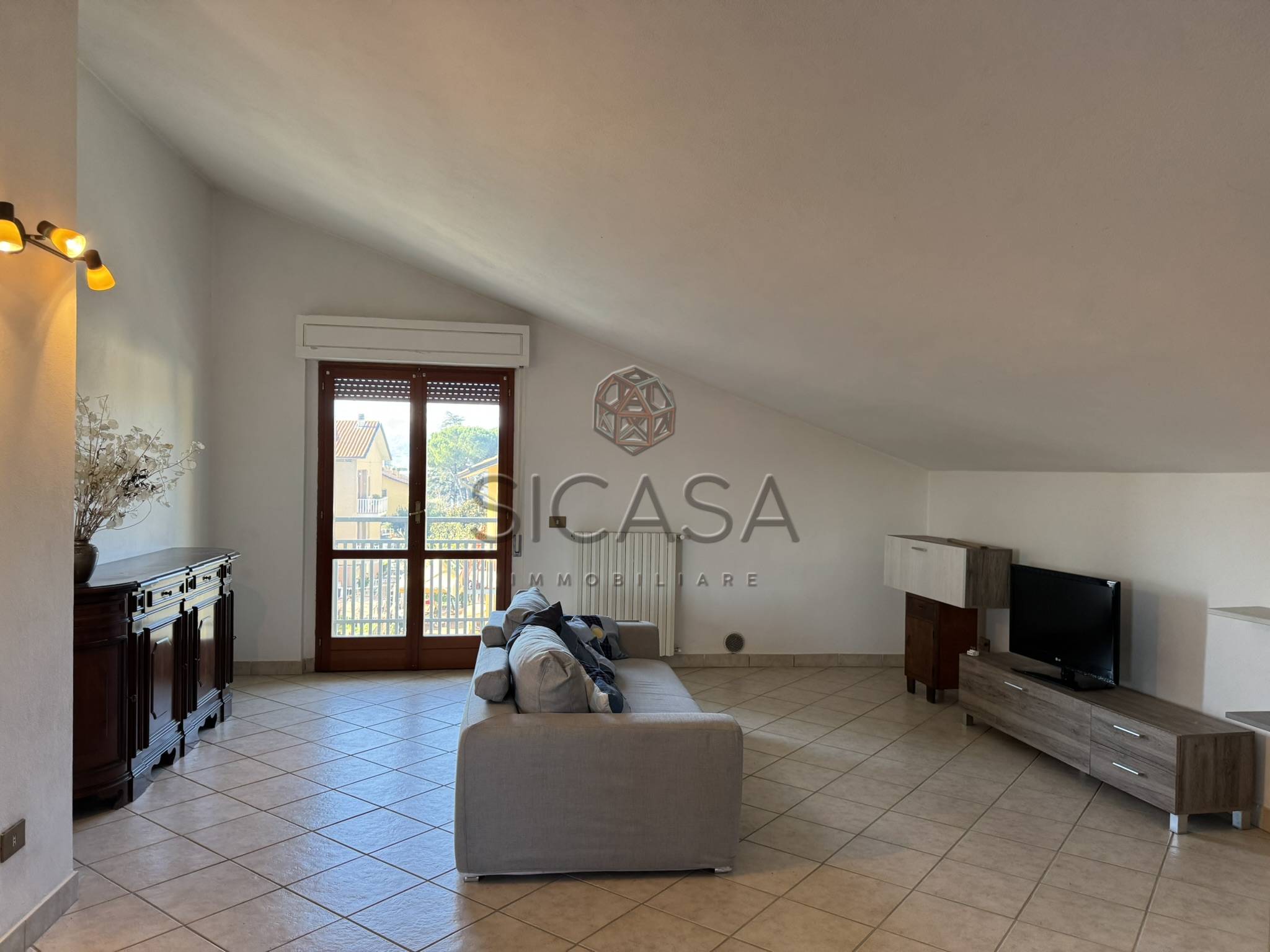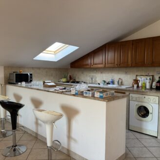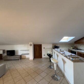 Appartamento mansardato, posto a piano secondo ed ultimo, con ingresso a sole due unità, composto da: ingresso, ampio living con cucina, zona pranzo e soggiorno, disimpegno, due ampie camere matrimoniali e bagno oltre a balcone.