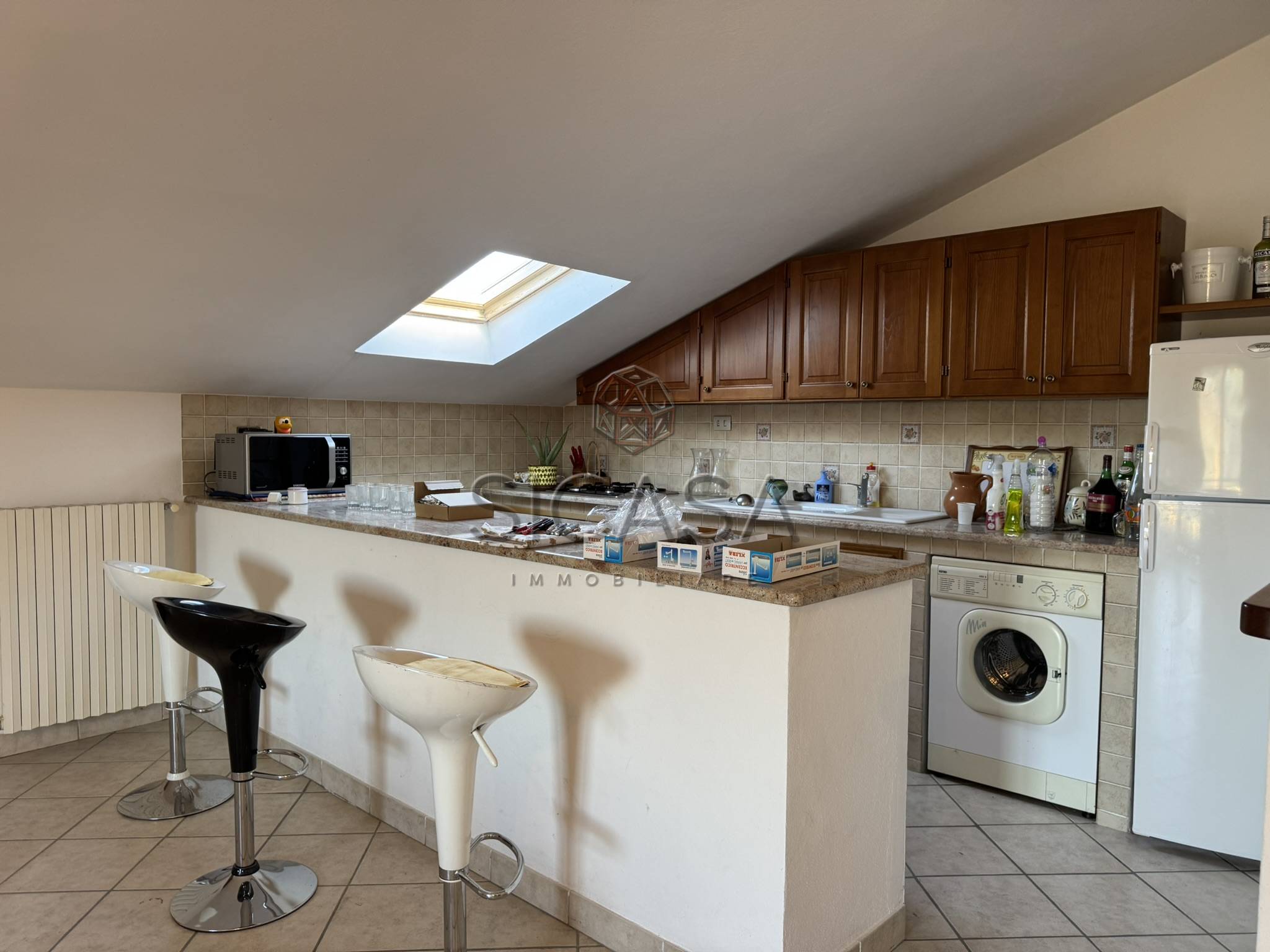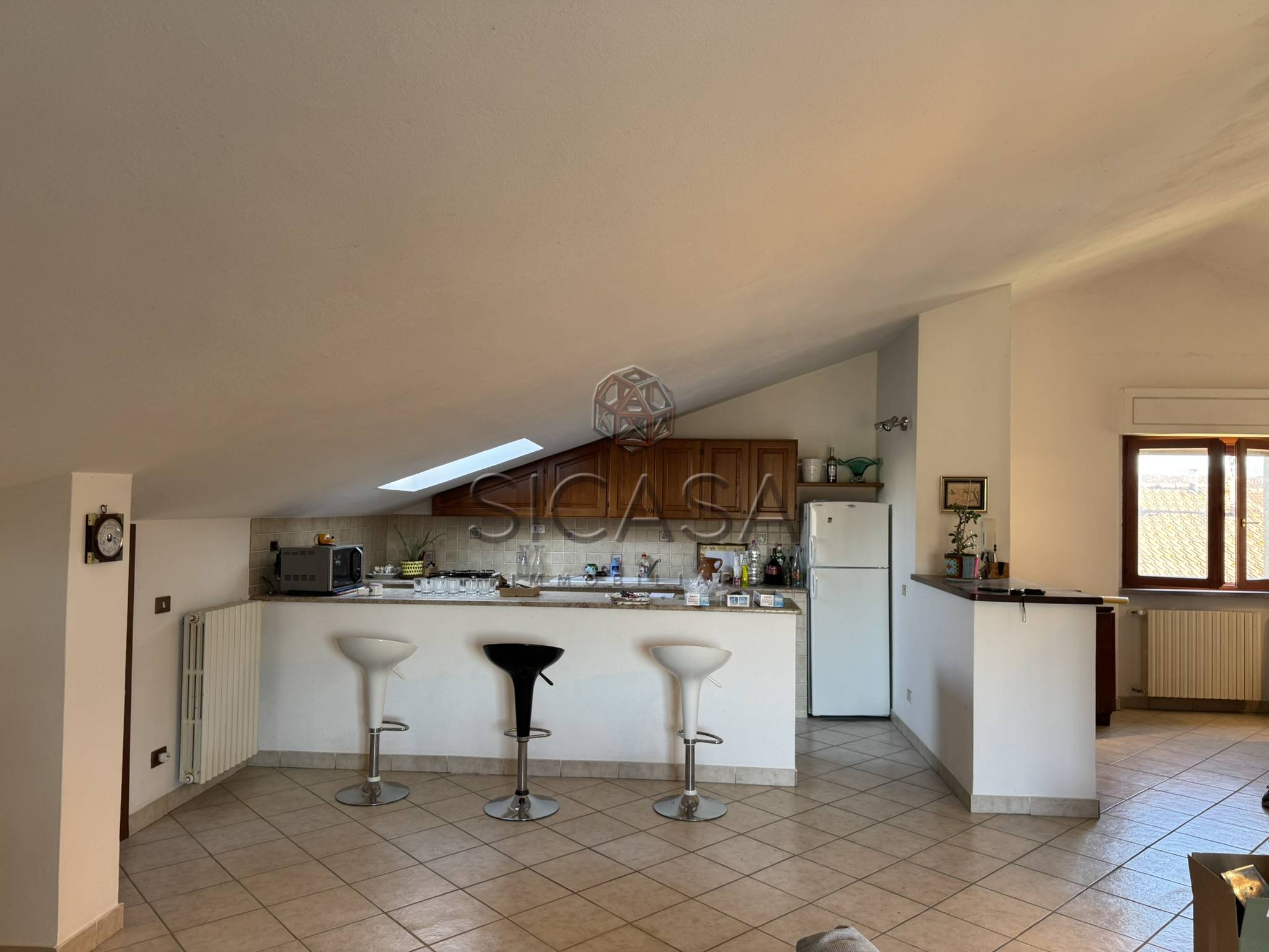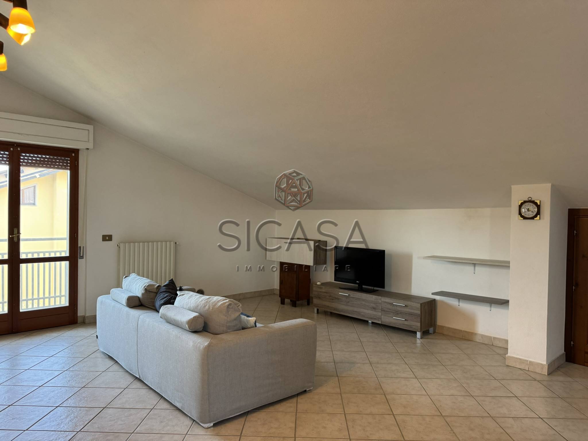 Appartamento mansardato, posto a piano secondo ed ultimo, con ingresso a sole due unità, composto da: ingresso, ampio living con cucina, zona pranzo e soggiorno, disimpegno, due ampie camere matrimoniali e bagno oltre a balcone.
