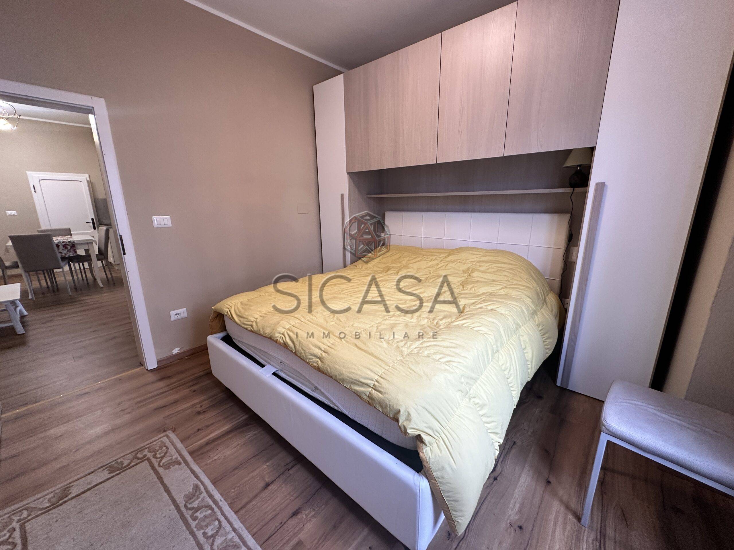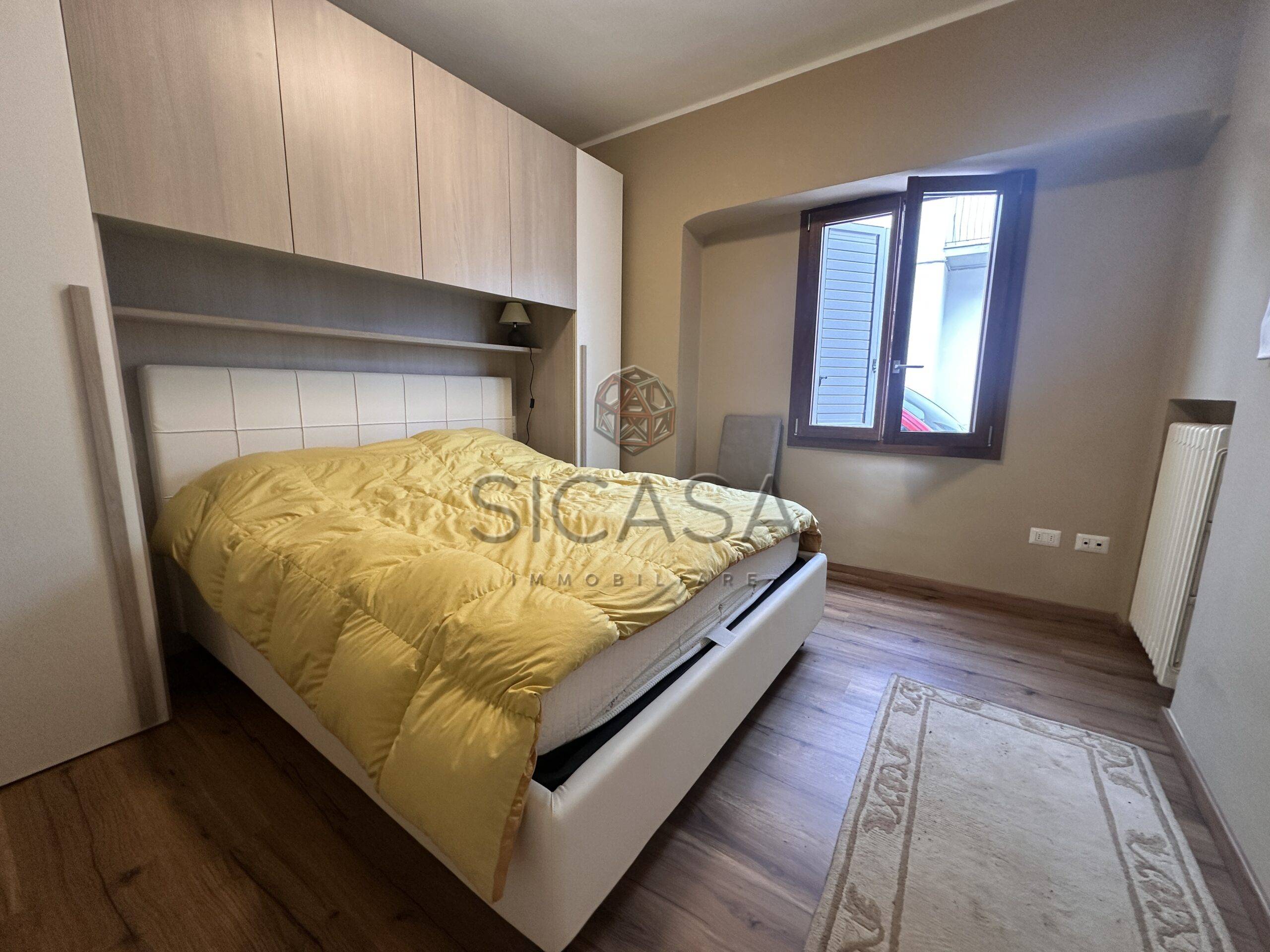 Appartamento completamente ristrutturato, situato in posizione centralissima nel primo fuori le mura. L’immobile, posto a piano terra e sviluppato su un unico livello, è composto da: ingresso indipendente, soggiorno open space con angolo cottura e camino, due camere matrimoniali, disimpegno e bagno finestrato. Completano la proprietà portico, giardino privato e fondo con zona lavanderia.