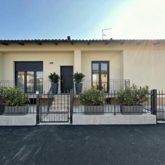 Casa singola in ottima posizione ben servita, a breve distanza dal centro storico, disposta su un unico livello per 110mq circa, composta da: ingresso, cucina abitabile, soggiorno, ampio disimpegno, tre camere matrimoniali di cui una con bagno en suite, bagno e balcone accessibile dalla zona giorno; ampia soffitta sottotetto al piano superiore; garage doppio di 50mq con possibilità di ricavare taverna o lavanderia.